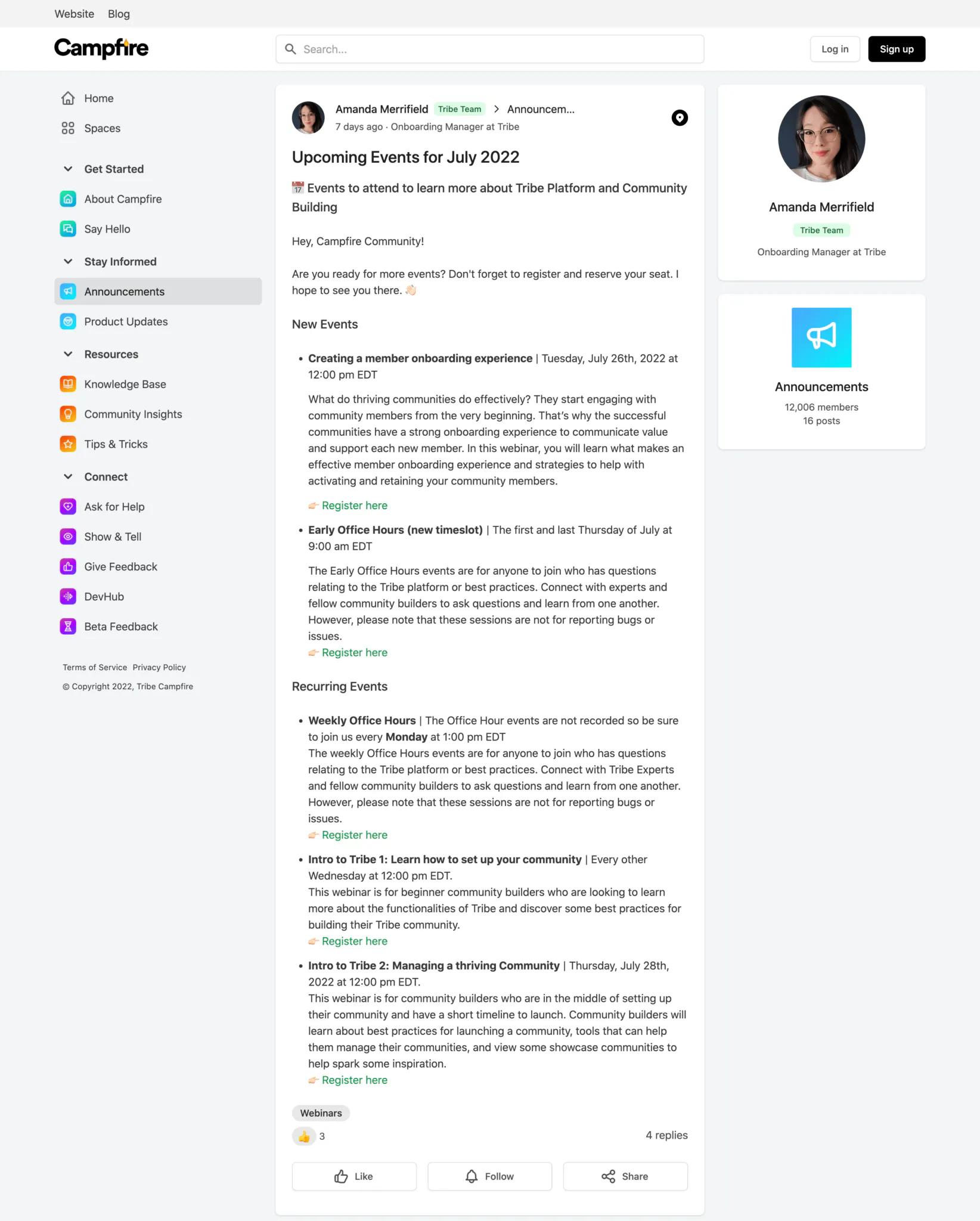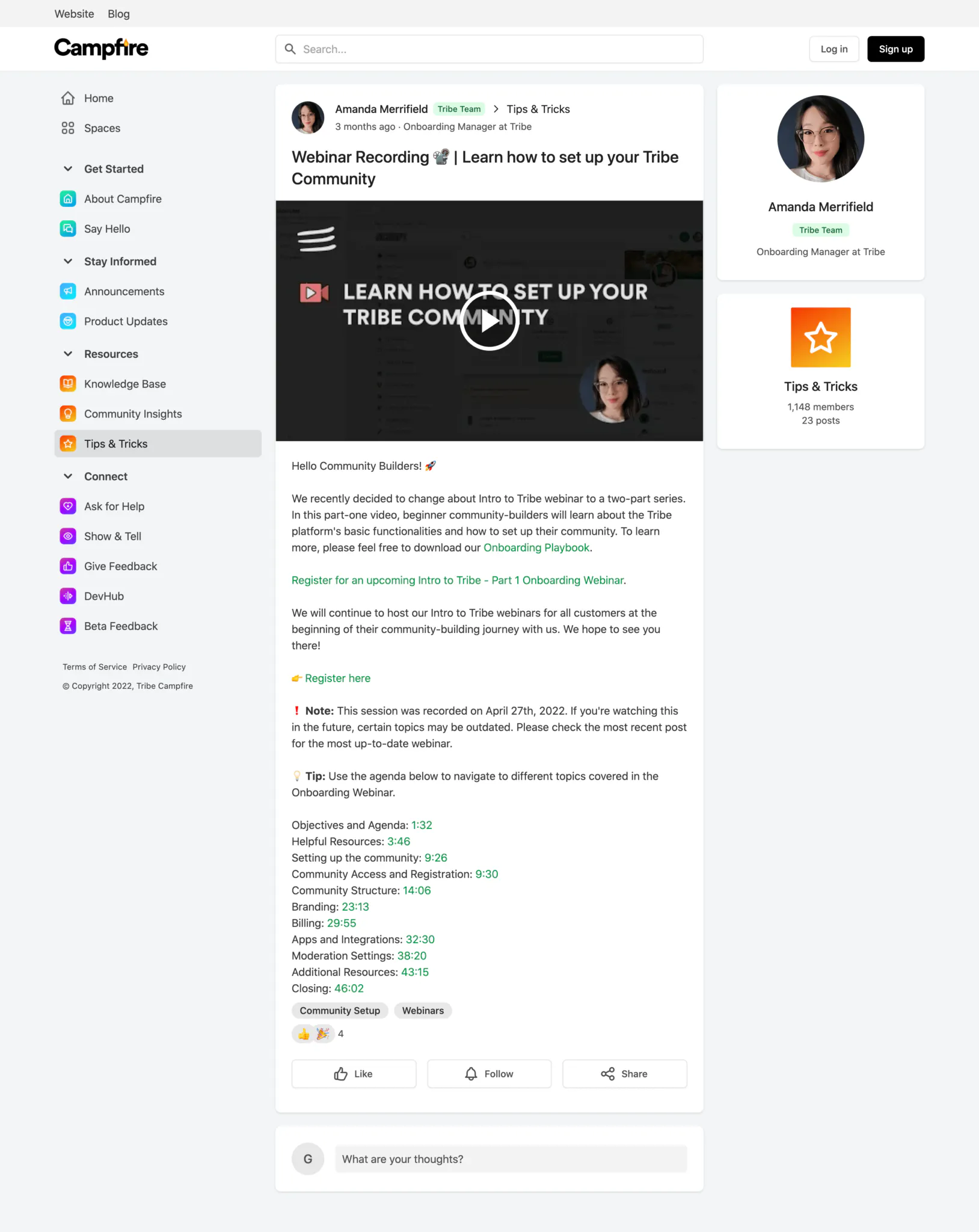 Here is an example of the customer onboarding webinar hosted by Bettermode's Onboarding Manager, Amanda Merrifield. The recording of the webinar is posted in the community so customers can watch and learn based on their preferences.