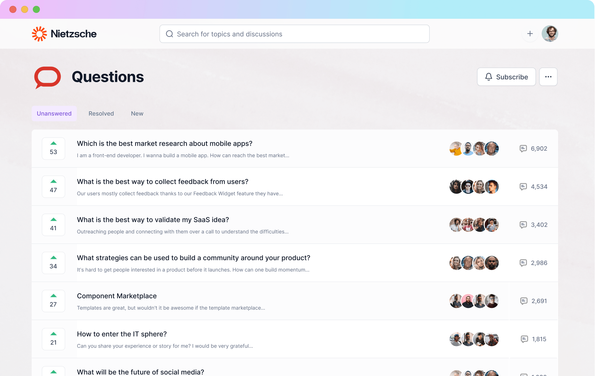 Bettermode is a customer community platform that lets you build an online space for customers to discuss their experiences, post questions, and engage with your brand. Separate spaces for discussions, Q&A, and idea sharing make it easy to collect customer feedback and offer self-service support.